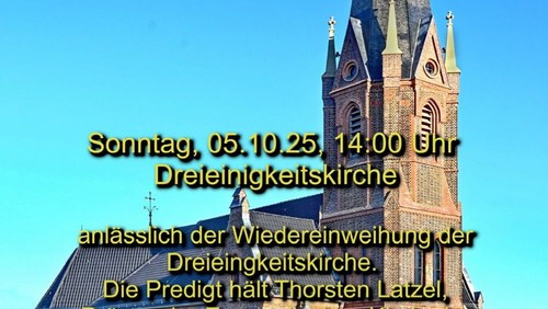 Die Predigt wird Thorsten Latzel, der Präses der Evangelischen Kirche im Rheinland, halten. Der Posaunenchor, der Handglockenchor und das Vocalensemble werden diesen besonderen Gottesdienst gemeinsam mit unserem Kantor Gerhard Behrens musikalisch gestalten. Wir freuen uns auf Gäste aus der Politik und der Ökumene.